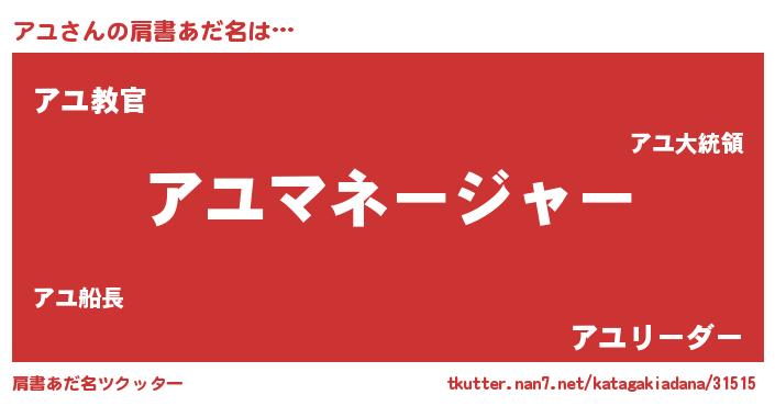 | 男性向けラノベタイトル風あだ名 | 『はたらくアユさま!』『緋弾のアユ』 |