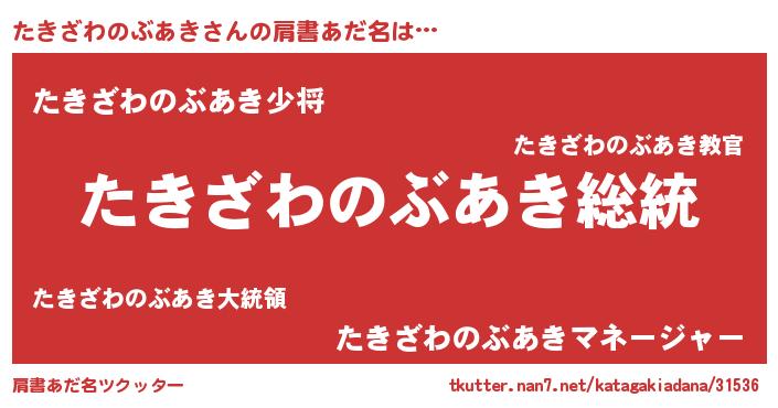 | 意味不明あだ名 | 『自称たきざわのぶあき』 |