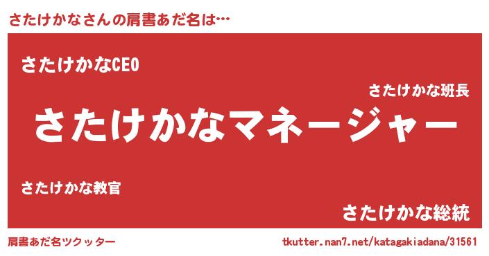 | 男性向けラノベタイトル風あだ名 | 『さたけかなに滅ぼされるだけの簡単なお仕事です』 |