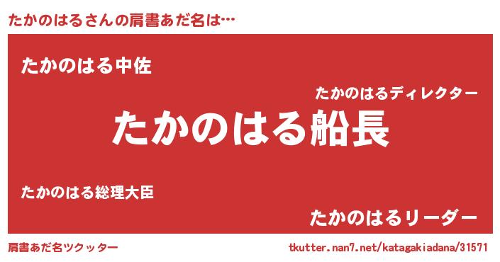 | 男性向けラノベタイトル風あだ名 | 『うちのたかのはるが世界を掌握している!』 |