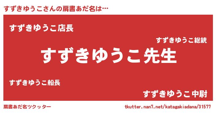 | ヘコむあだ名 | 『すずきゆうこ(笑)』『すずにゅー』 |