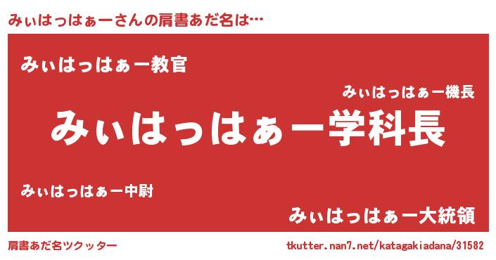 | ヒーロー風カッコイイあだ名 | 『天空の使者みぃはっはぁー』 |