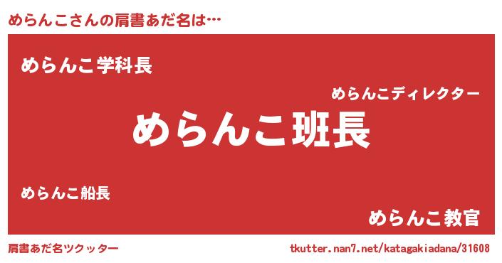 | 意味不明あだ名 | 『とにかく怪しいめらんこ』 |