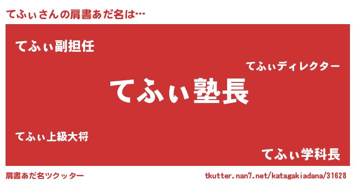 | 意味不明あだ名 | 『とにかく怪しいてふぃ』 |