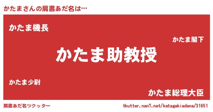 | ヒーロー風カッコイイあだ名 | 『正義の使者かたま』『ネオカタマ』 |