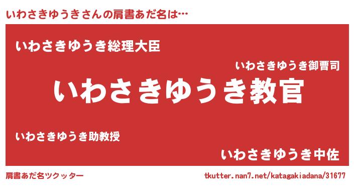 | 男性向けラノベタイトル風あだ名 | 『魔弾の王といわさきゆうき』 |