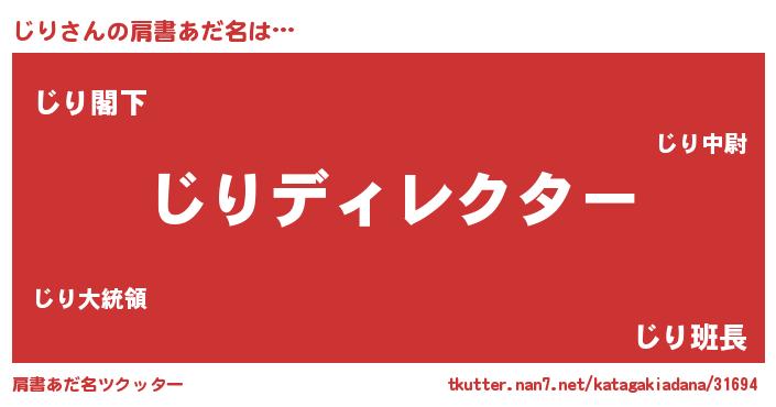 | 男性向けラノベタイトル風あだ名 | 『はたらくじりさま!』 |