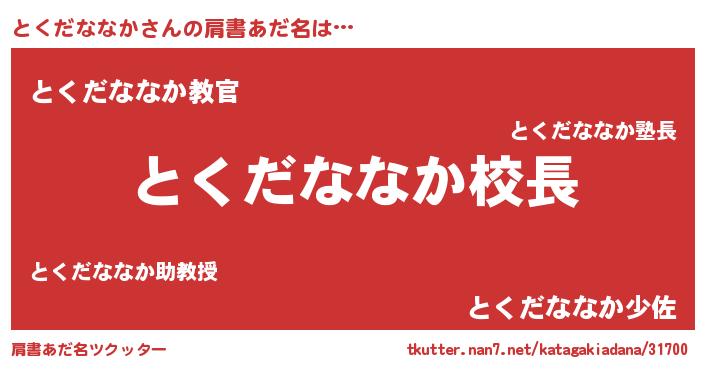 | 男性向けラノベタイトル風あだ名 | 『とくだななかという概念が存在しない退屈な世界 』 |