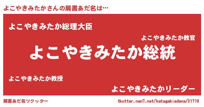 | 意味不明あだ名 | 『自称よこやきみたか』 |