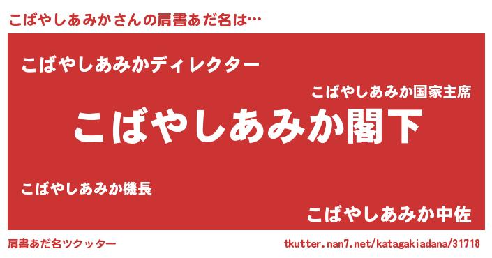 | 意味不明あだ名 | 『自称こばやしあみか』 |
