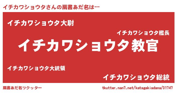 | 男性向けラノベタイトル風あだ名 | 『この素晴らしい世界にイチカワショウタを!』 |