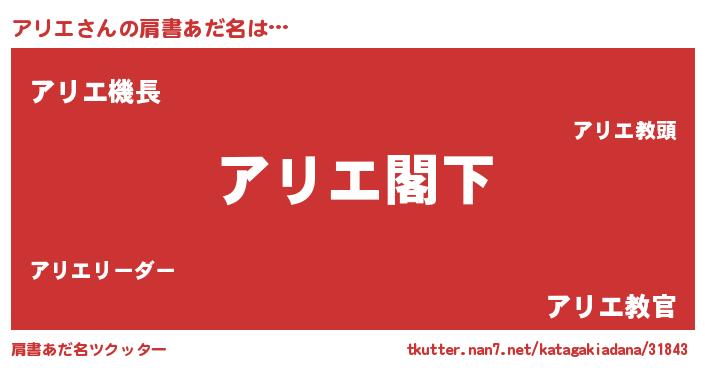 | ヘコむあだ名 | 『アリエ(小並感)』『アリぷりん』 |