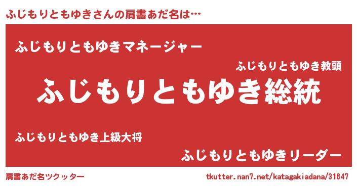 | 男性向けラノベタイトル風あだ名 | 『魔法科高校のふじもりともゆき』 |