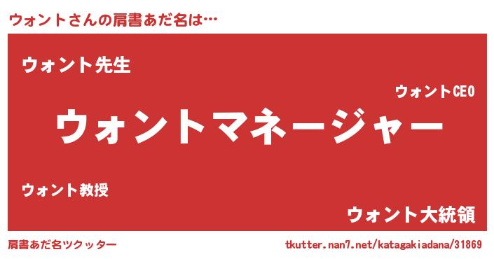 | ヒーロー風カッコイイあだ名 | 『ネオウォント』『ウルトラウォントマン』 |