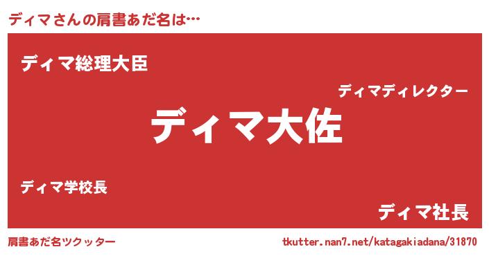| 女子向けラノベタイトル風あだ名 | 『ディマの玉の輿計画!』 |
