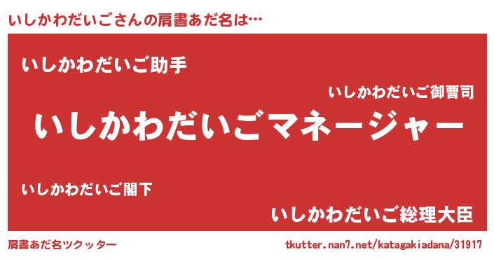 | 胡散臭い通販商品みたいなあだ名 | 『お金では代えられないマグネット磁石…その名も「いしかわだいご」』 |