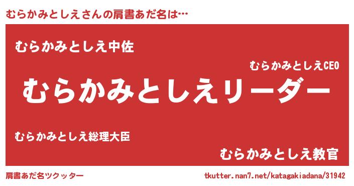 | 男性向けラノベタイトル風あだ名 | 『むらかみとしえの嫁は女の子じゃないと思った?』 |