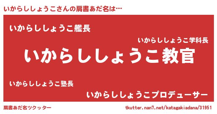 | 料理風あだ名 | 『いからししょうこのカルパッチョ風』 |