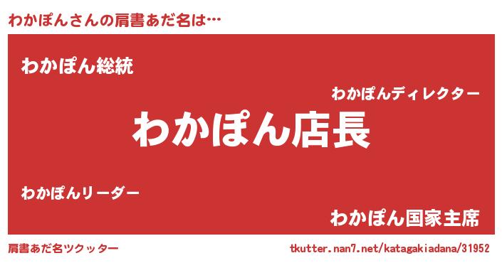| 意味不明あだ名 | 『ペロリンわかぽん』『自称わかぽん』 |