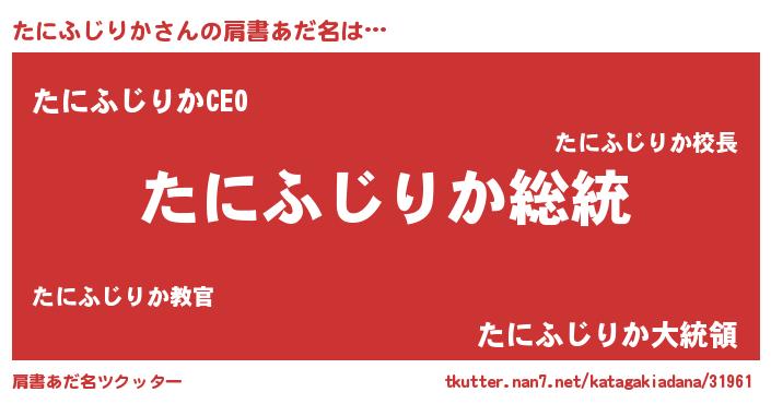 | ヒーロー風カッコイイあだ名 | 『最強戦士タニフジリカ』『仮面タニダー』 |