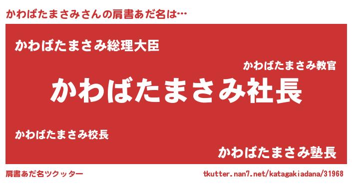 | ヒーロー風カッコイイあだ名 | 『スーパーカワバタマサミ』 |