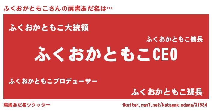 | ヒーロー風カッコイイあだ名 | 『スーパーフクオカトモコ』 |