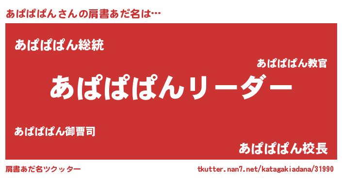 | ポケモン風あだ名 | 『ヒアパパパン』『アパセウス』 |