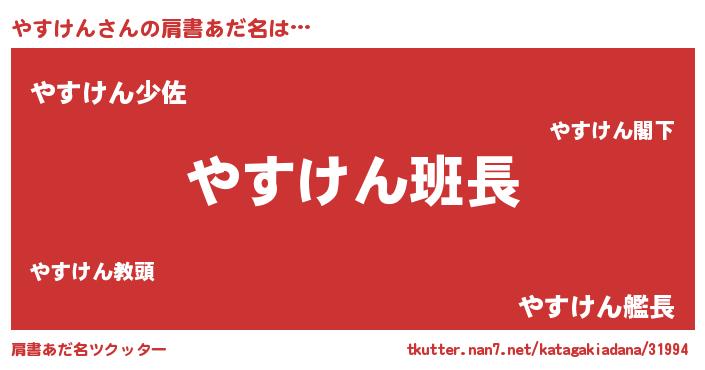 | ポケモン風あだ名 | 『ヒヤスケン』『ヤスキング』 |