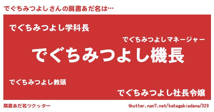 | ヘコむあだ名 | 『でぐもー』『でぐちみつよし(苦笑)』 |