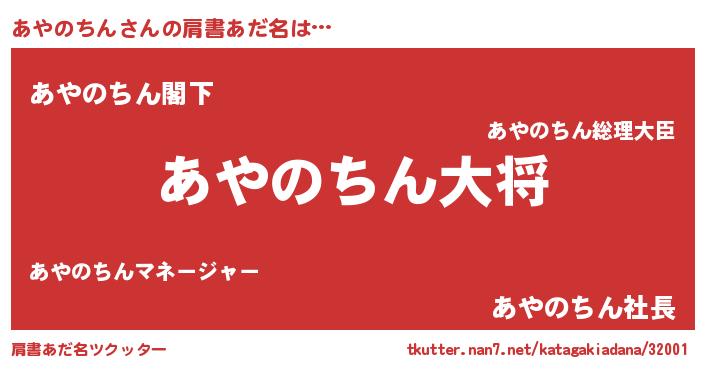 | ヒーロー風カッコイイあだ名 | 『究極戦士アヤノチン』『魔戒騎士アヤ』 |
