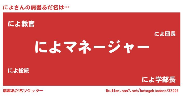 | 意味不明あだ名 | 『住所不定無職によ(9歳)』『自称によ』 |