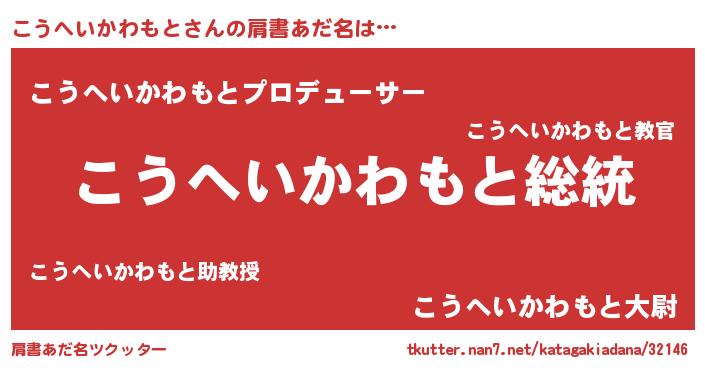 | 意味不明あだ名 | 『自称こうへいかわもと』 |