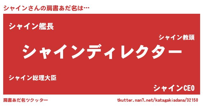 | 男性向けラノベタイトル風あだ名 | 『シャインに滅ぼされるだけの簡単なお仕事です』 |
