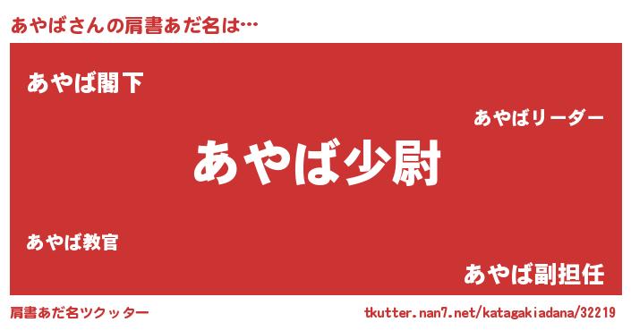 | 男性向けラノベタイトル風あだ名 | 『アヤバスレイヤー』 |
