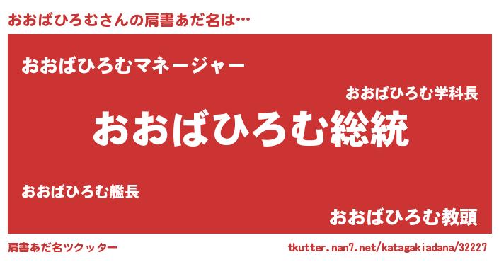 | ヘコむあだ名 | 『おおばひろむ(苦笑)』『おおを』 |