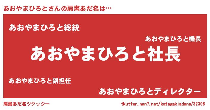| ヘコむあだ名 | 『あおにー』『あおやまひろと(遠い目)』 |