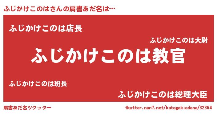 | 男性向けラノベタイトル風あだ名 | 『この素晴らしい世界にふじかけこのはを!』 |