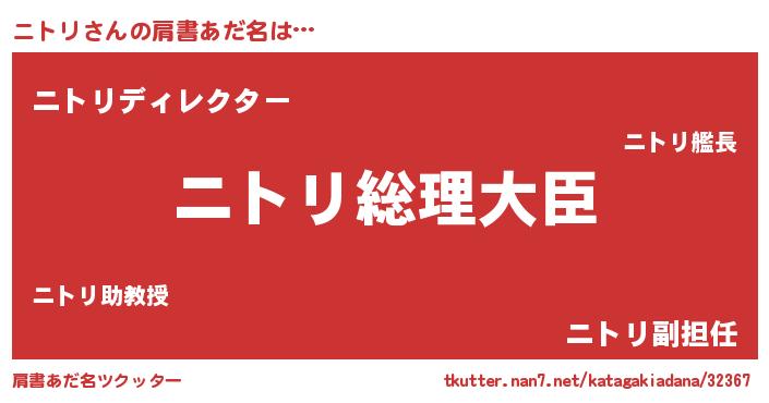 | 女子向けラノベタイトル風あだ名 | 『ニトリの雑貨屋さん』『ニトリ恋絵巻』 |