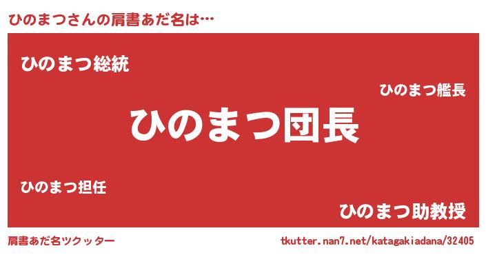 | 意味不明あだ名 | 『とにかく怪しいひのまつ』 |