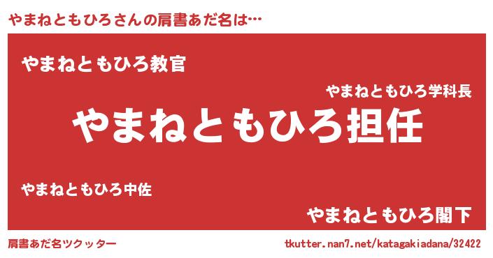 | ヘコむあだ名 | 『やまねともひろ(苦笑)』『やまっ子』 |