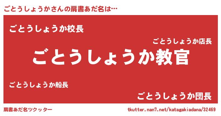 | 男性向けラノベタイトル風あだ名 | 『この素晴らしい世界にごとうしょうかを!』 |