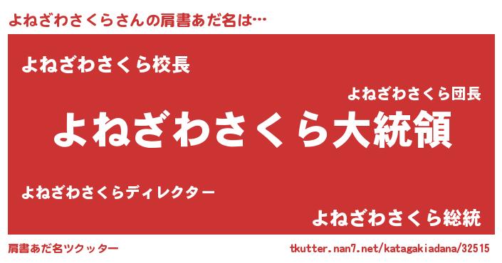 | 男性向けラノベタイトル風あだ名 | 『やはりよねざわさくらの青春ラブコメはまちがっている 』 |