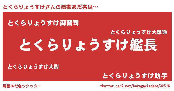 | 男性向けラノベタイトル風あだ名 | 『緋弾のトクラリョウスケ』 |