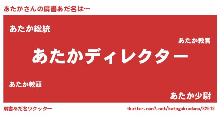 | ヘコむあだ名 | 『あたか(笑)』『あたにゅー』『牛乳』 |