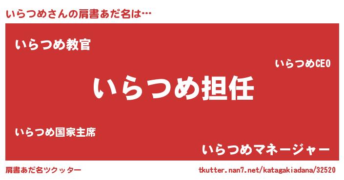 | ヘコむあだ名 | 『いらつめ(苦笑)』『いらもー』 |