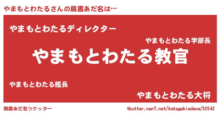 | 男性向けラノベタイトル風あだ名 | 『この素晴らしい世界にやまもとわたるを!』 |