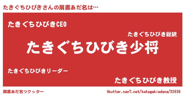 | 男性向けラノベタイトル風あだ名 | 『タキグチヒビキスレイヤー』 |