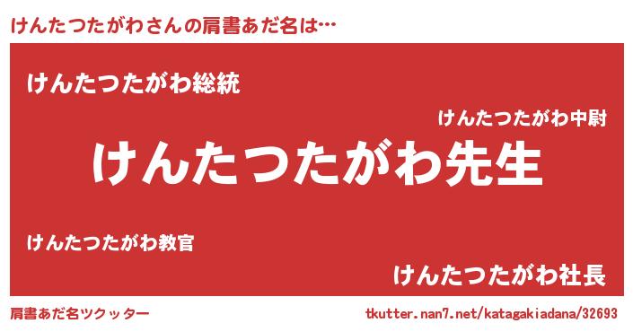 | 恥ずかしいあだ名 | 『けんちん』『ケンタツタガワデラックス』 |