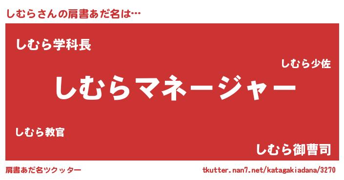 | 男性向けラノベタイトル風あだ名 | 『はたらくしむらさま!』 |