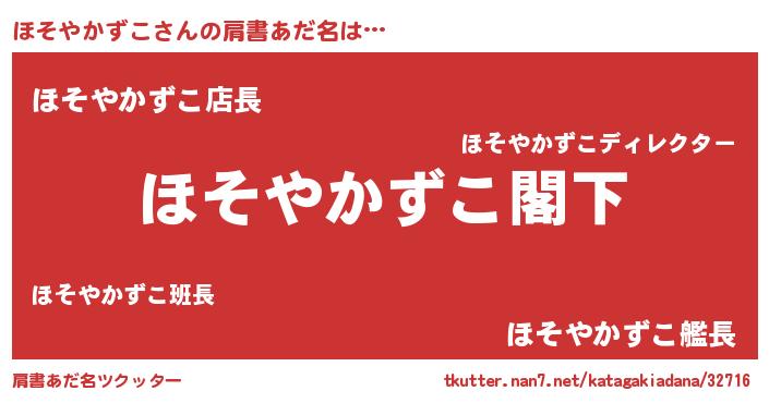 | 女子向けラノベタイトル風あだ名 | 『ほそやかずこなんてお断りですっ。』 |